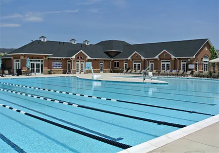 Brambleton Corner Pool & Clubhouse project features include a Community Center with an entry foyer with a waiting room, game room, serving kitchen, 1900 SF events room, prep kitchen, bar serving area, and audio-video room. The project included an 8-lane competition pool with separate beach entry and deck seating areas. The Poolhouse has an entry foyer with a greeting area, Men’s and Women’s locker rooms, family bathrooms, pool equipment, electrical rooms, and guard room.