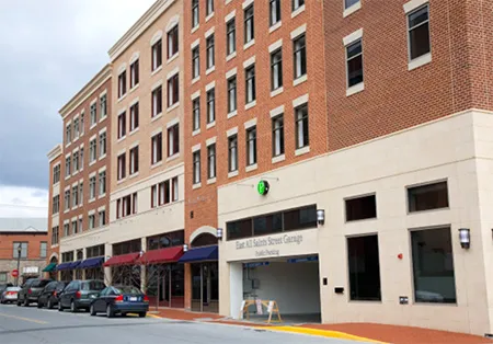 East All Saints Parking Garage is a post-tensioned cast-in-place concrete parking structure with seven (7) elevated levels above ground and one (1) level of parking below grade, which is supported by a mico-pile foundation system, with the ground floor having multiple retail spaces. The façade of the garage consists of hand-laid brick, precast concrete sills, and headers, glass fiber reinforced concrete cornices, with storefront and canopies at the retail areas.