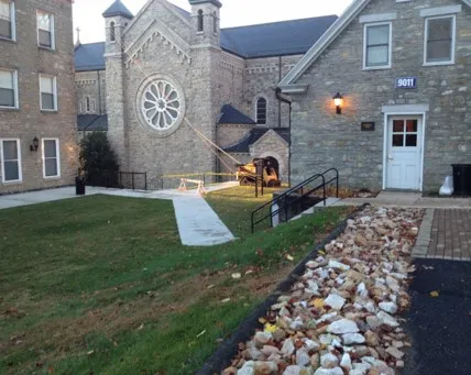 The major scope of the project consisted of the design and replacement of the Bell Tower’s roof structure. Replacement consisted of eighty-five percent of the roof timber framing, all the exterior sheathing, ninety percent of the slate roof shingles, and all roof level gutters and downspouts. In addition to the tower renovation the project also included repairs to the exterior sidewalks and landscaping due to the damage caused by fire truck access and water to extinguish the fire.